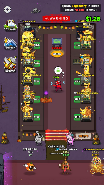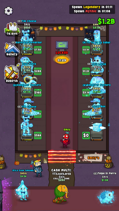 Steal a Monster предлагает вам провести время в компании симпатичных монстров. Но сначала их нужно украсть у других игроков или приобрести в обмен на монеты, сгенерированные вашими же монстрами или полученные благодаря моду на много денег. Ваша задача - собрать уникальную коллекцию представителей племени Brainrot, и защитить их от воров стенами своей базы.