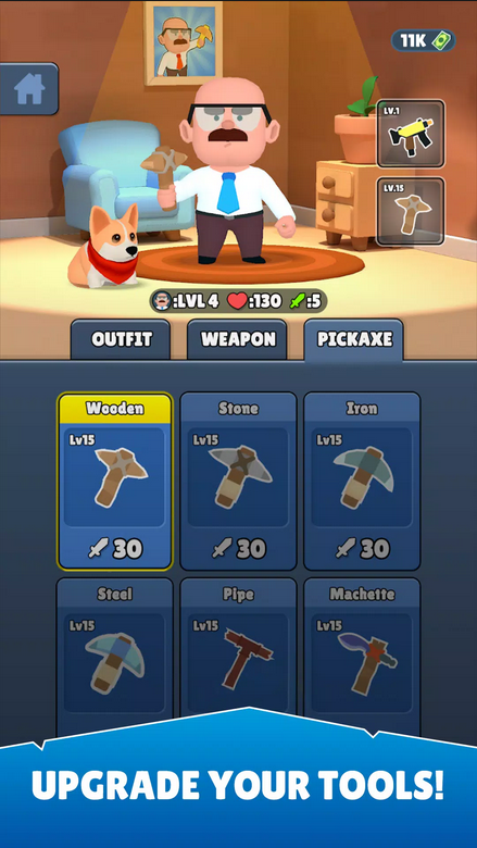 В Jerry Safe House по пути будут попадаться разнообразные материалы и ресурсы. Они пойдут на создание оружия, инструментов, мебели и других предметов. Кирку Джерри также можно улучшать. Это позволить копать быстрее и добывать больше ресурсов.Обустраиваем убежище