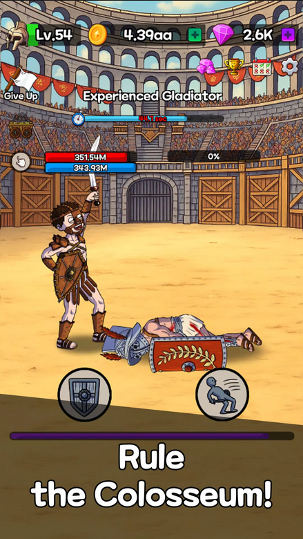 Начните свое гладиаторскую карьеру с тренировки своего героя, отработки боевых приемов и прокачки его физических навыков. Вы можете настроить его внешность и наделить определенными боевыми навыками и качествами. И не забывайте, что каждый элемент снаряжения и оружия непосредственно влияет на стиль вашего гладиатора и исход сражений на арене Колизея. Сначала в ваших руках окажутся деревянные щит и меч, но участвуя и побеждая в боях вы быстро это измените. Приступайте прямо сейчас.