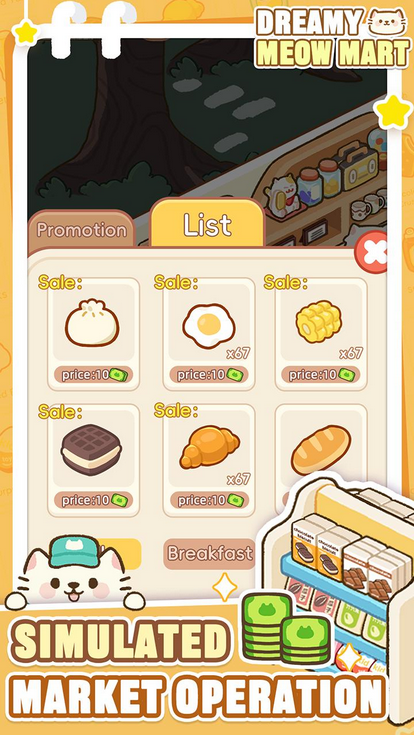 Dreamy Meow Mart - новый красочный симулятор для Android, ориентированный на любителей кошек. Героиня этой игры - симпатичная кошечка, управляющая продуктовым магазином. Все ее клиенты тоже коты и кошки, и нужно сказать, что покупатели они довольно привередливые. Придется очень постараться, чтобы ни один из них не ушел от вас с пустыми лапами. Регулярно обновляйте и расширяйте ассортимент, соединяя между собой одинаковые элементы. И наблюдайте за тем, как ваш маленький магазинчик превращается в самое популярное место в городке. Создавайте различные комбинации и даже обычный сэндвич в ваших руках превратится в кулинарное чудо. Дайте волю своей фантазии и сочетайте несочетаемое.