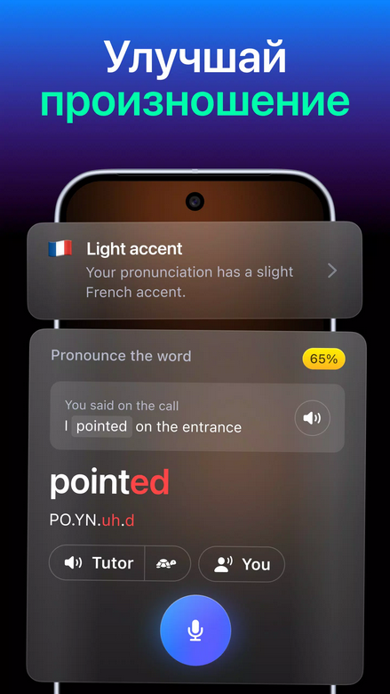 Искусственный интеллект оценит уровень ваших знаний, проанализирует ошибкии подберет специальные задания, которые помогут избежать их в дальнейшем. Постоянный анализ и регулярные занятия с AI помогут улучшить беглость и четкость произношения. Также есть задания на изучение новых слов и расширение словарного запаса. Тематика разговоров довольно обширная и практически охватывает все спектры повседневной жизни, как в бытовой, так и в профессиональной сферах. Мод на Premium откроет вам доступ к полному списку возможностей утилиты. В частности, вы сможете вести реальные диалоги с AI и таким образом отрабатывать навыки произношения: беглость, естественность, уверенность в любое удобное время. Также утилита будет полезна людям, у которых есть проблемы с понимаем английского на слух. AI будет отслеживать ваши результаты и не навязчиво стимулировать к дальнейшим успехам.