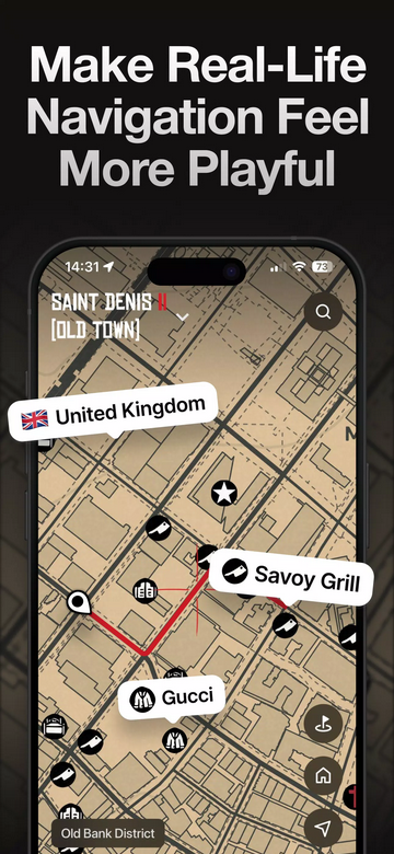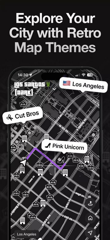 С его помощью каждый пользователь может создать уникальный художественный стиль своей личной карты дорог и получить уникальный опыт ориентирования на местности. И это не обязательно должен быть ваш район или город. Вы можете применять Game Maps IRL для карт других городов и стран, и представлять реальные локации в стилистике популярный игровых проектов. Для удобства использования, отметьте свой дом на карте и быстро прокладывайте любые маршруты от него или к нему.