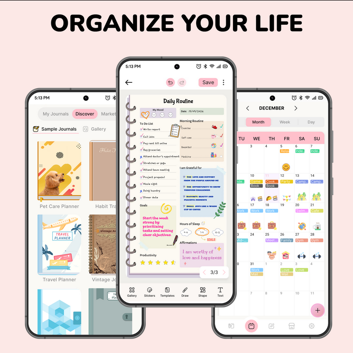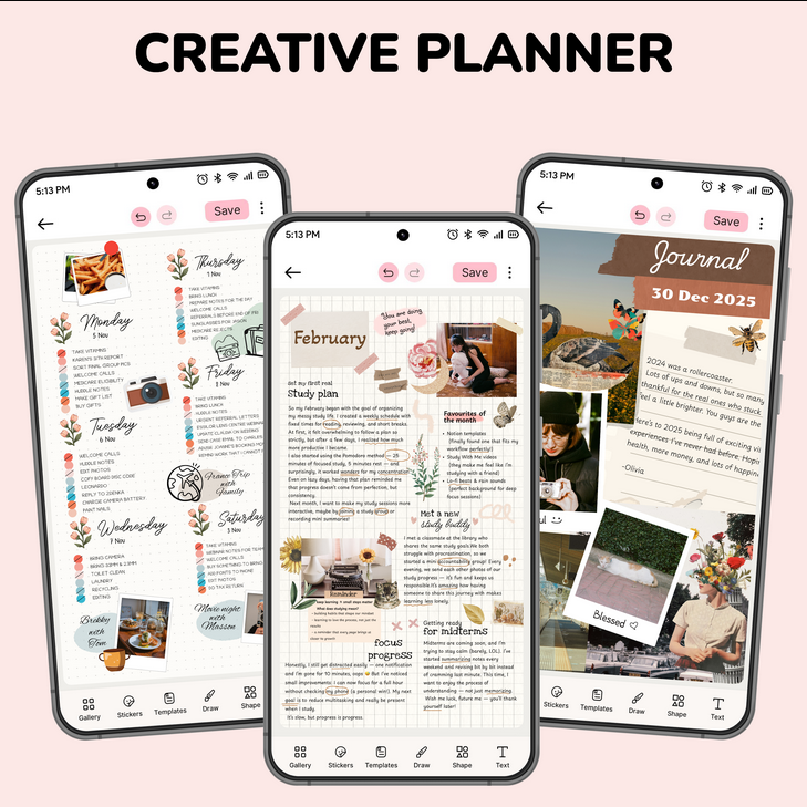 В коллекции Journal: Notes, Planner, PDFs более трехсот настраиваемых шаблонов, доступ к которым в полной мере обеспечивает мод на Premium. Воспользуйтесь ими, для сохранения своих мыслей привычным для многих способом - письменных заметок, напоминаний, зарисовок, планов на день, важных дел, встреч и других событий, внося их в календарь с интеллектуальной системой напоминаний. Быстро находить нужные заметки вам помогут красочные стикеры на любой вкус. Их более тысячи, то есть каждый пользователь может выбрать свой вариант.