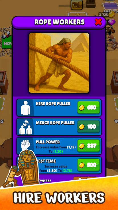 TombPusher предлагает геймеру дотолкать огромный саркофаг в пункт назначения. Поскольку справиться с этой задачей в одиночку не возможно, вам придется нанять команду рабочих. Но ресурсов у вас не так много, поэтому распределять их придется максимально эффективно. Для этого вам понадобится продуманная стратегия и тщательная координация всех действий. Чтобы справиться с заданием и уложиться в «бюджет», необходимо продумать каждую мелочь, включая расстановку работников и маршрут движения саркофага. Оптимизируйте рабочую силу и влияйте на процесс продвижения, принимая решения, способные повлиять на результат путешествия. Мод на много денег откроет для вас ряд новых возможностей. В частности, позволит получить дополнительных работников.