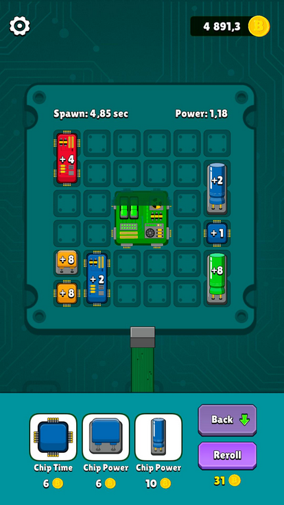 Постепенно открываются новые типы чипов, отличающиеся большей мощностью. Соединяйте идентичные детали, чтобы планомерно улучшать цепь. Экспериментируйте с конфигурациями расположений, внося что-то новое и выявляя наилучшие конструкции. Имеющаяся система реакторов – фишка игры, которая привнесет новизну в геймплей.Прокачивайте параметры чипов и наблюдайте, как ваши старания приносят результат.