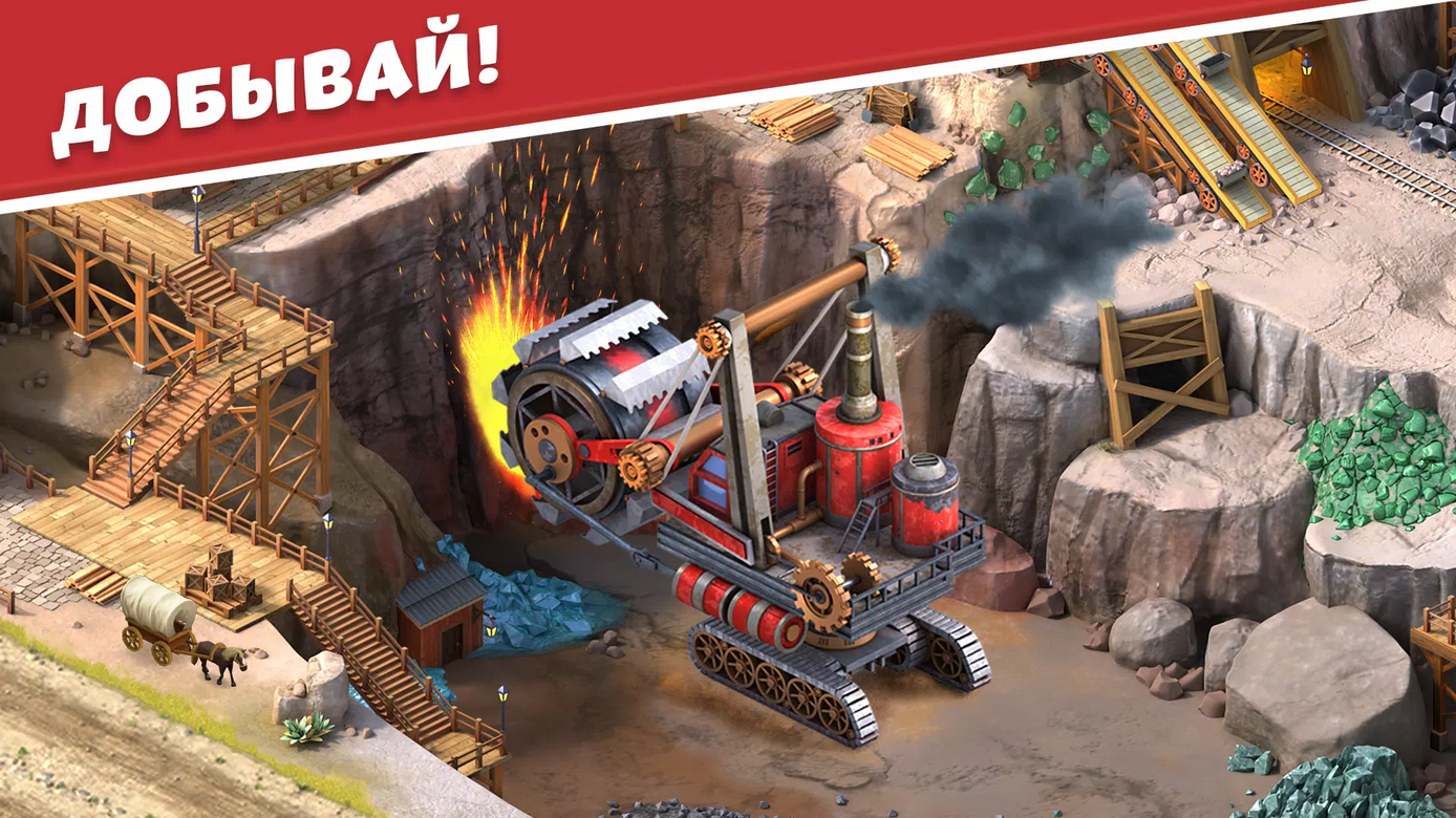 Ваша цель - развитый перспективный город на месте пыльного поселения. Расширяйте территорию, соединяйте его районы мостами и железными дорогами, используйте свою фантазию для создания уникального стиля каждого его здания и уголка. Докажите, что вы лучший хозяин города на Диком Западе, участвуя в еженедельных состязаниях мэров. Соберите свою коллекцию ценных призов и займите достойное место в таблице игрового рейтинга.