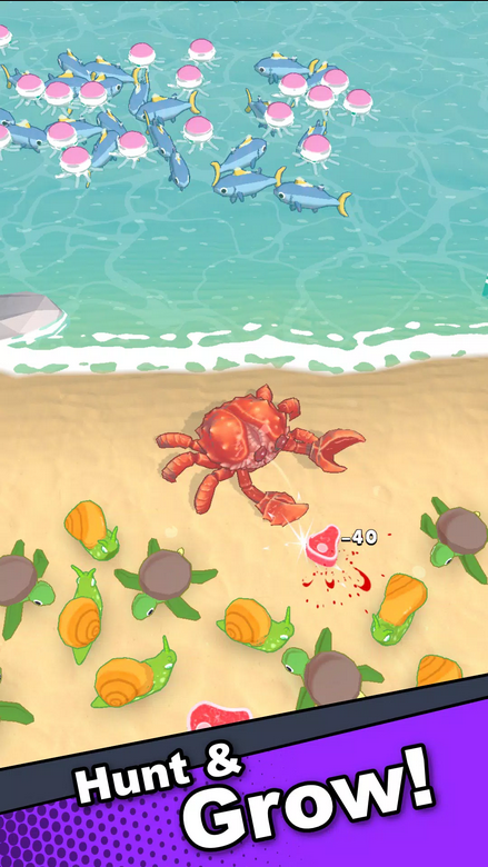 Crab Life - это ваша история выживания, в которой придется уничтожить каждого, кто встретиться на пути: вооруженные люди, черепахи, улитки, осьминоги и огромные синие киты. Продуманная стратегия станет вашим основным оружием в этой борьбе. А благодаря Idle-геймплею ваше движение к цели будет продолжаться даже когда вы вне игры. Вас ждет захватывающее приключение среди живописных пляжей и опасных врагов, исход которых в ваших клешнях. Удачи в боях на суше и в море.